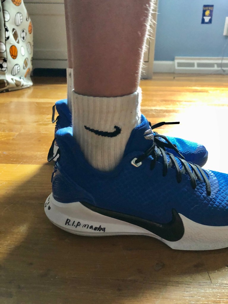 Hadley and I missed Hayden’s first game, but when he and Travis got home, Travis asked if I had noticed Hayden’s shoes. Hayden’s just a sweet boy with a permanent marker and a pair of Mambas.