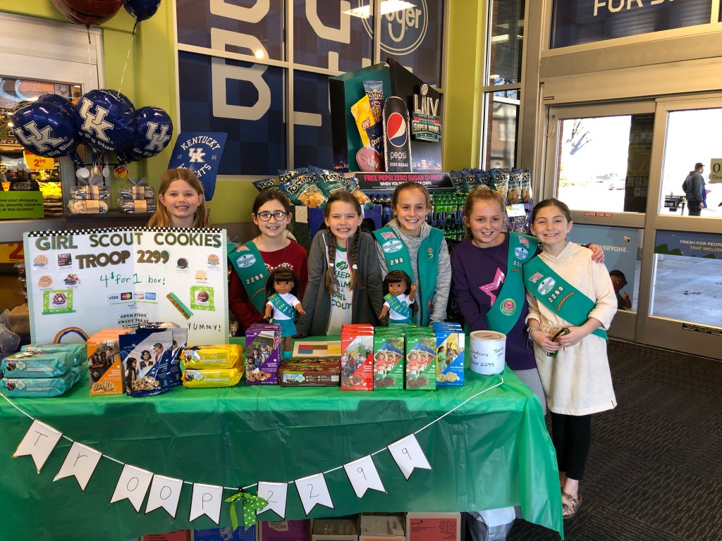 On Sunday, her troop had a cookie booth at Kroger for a couple of hours.