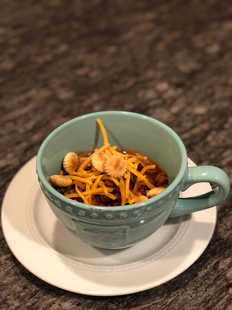 Happy Monday! After an unexpected four day weekend, we are ready to hit the ground running this week…..at least I think we are! Well, what choice do we have?! haha. The weather was actually cold enough last week (and it finally snowed on Friday!) to make chili, so I made my dad’s chili. I thought I’d share the recipe with you.