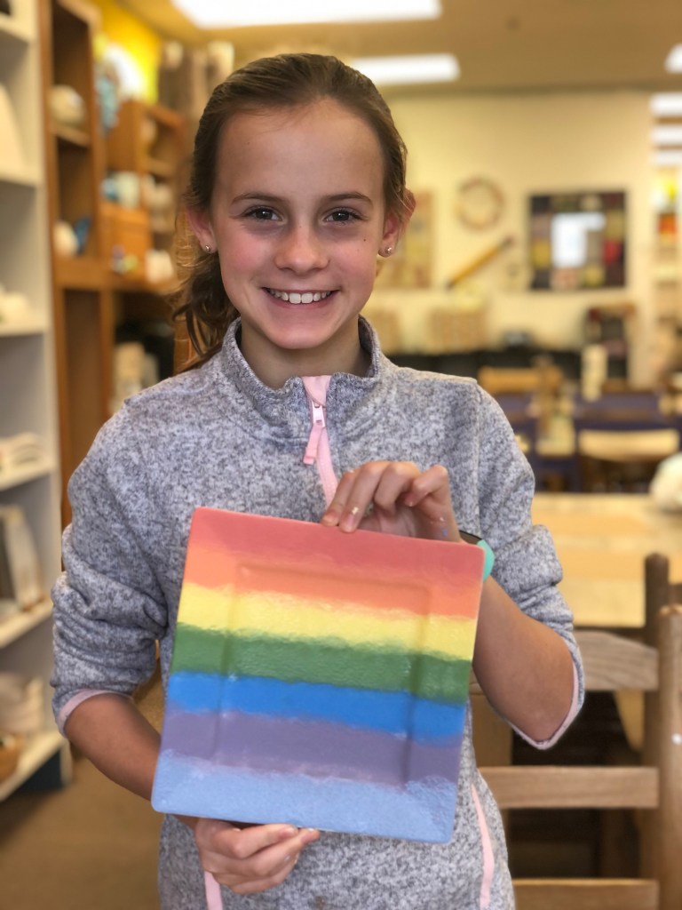 Thanks to an unexpected four day weekend last week (due to low attendance in our district for the flu + it snowed last friday), we were able to have some extra fun. My mom (GG) was in town, we had snowman pancakes, the kids played in the snow, chose Taco Bell for lunch, and then we went to a local pottery painting place and the kids each chose a plate to paint. They’ve been wanting to go the the Mad Potter, so I figured a snow day was a great day to let them choose something to paint. They did most of the painting themselves, and both were proud of their finished products. We can pick the painted pieces up today, so I know it will be a favorite activity for the week to see their creations in person.
