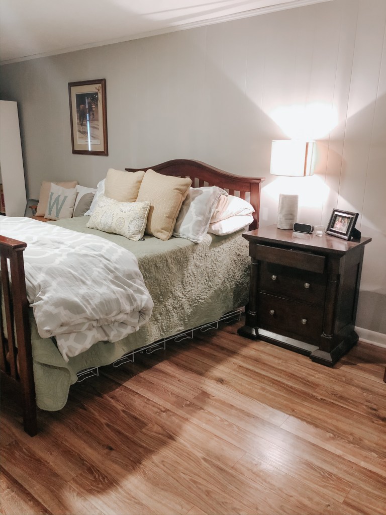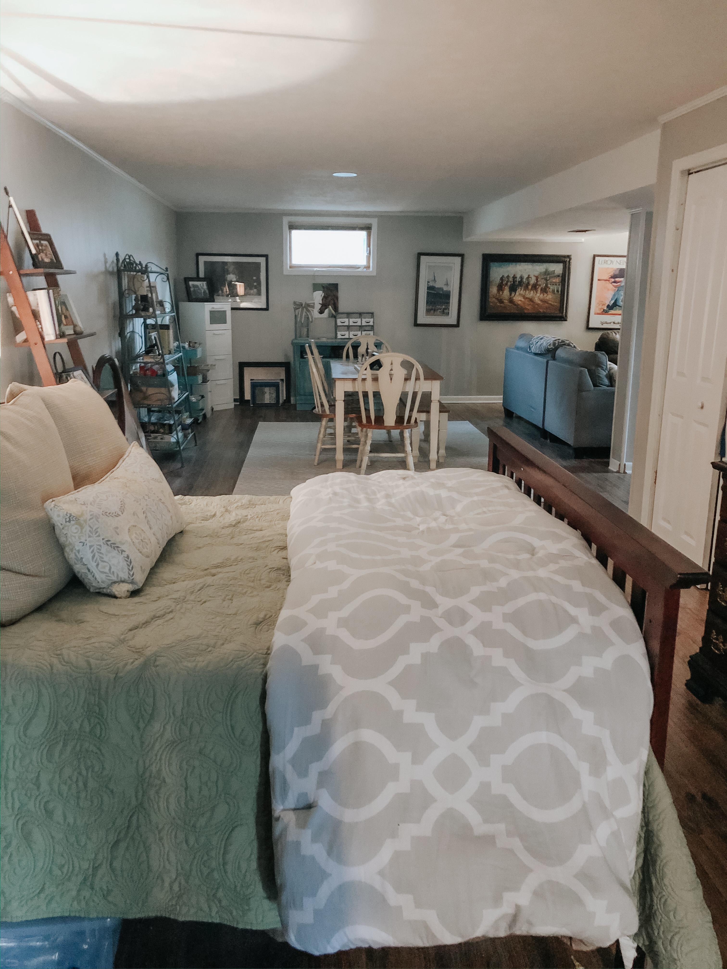 On the other side of the basement, we have a bedroom area set up. Since my family lives out of town, we usually have visitors at least six times a year.