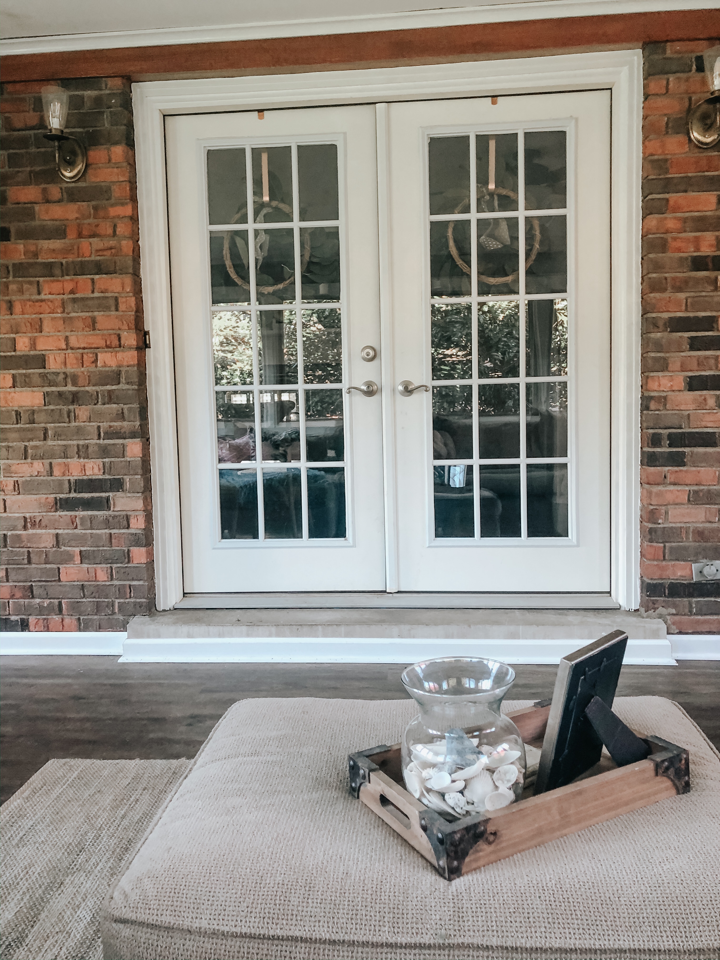After we figure out the furniture, we hope to make room and move the tv stand I painted and tv. That has been a hold up as well. The only wall space (we’d thought about mounting a tv) we have is where the back doors open up…so inevitably, the door will bang into the tv. Also, the French doors take up most of that wall anyway.
