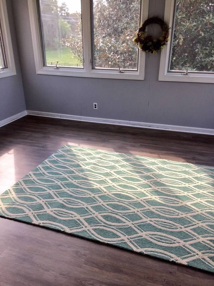 This is a pic of the emptied out sunroom with the new flooring—I believe we did that in spring of 2016, and it’s held up so nicely.