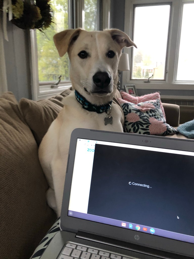 We’ve been trying to keep Homer out of trouble. He’s a full time job!! The other day, he ate at least six donuts from the box of donuts Travis bought at a local place. He also joined me on a Zoom meeting last week.