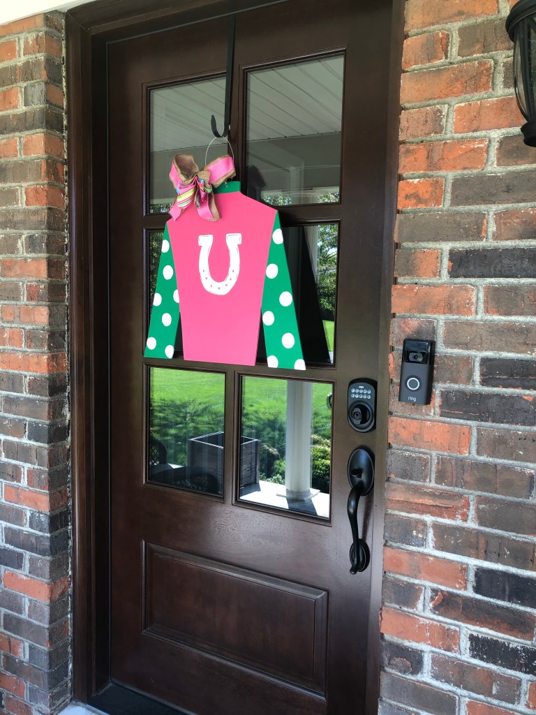 I went ahead and hung my jockey silk door hanger and garden flag. It just didn’t feel right not to…during these first few days of May.