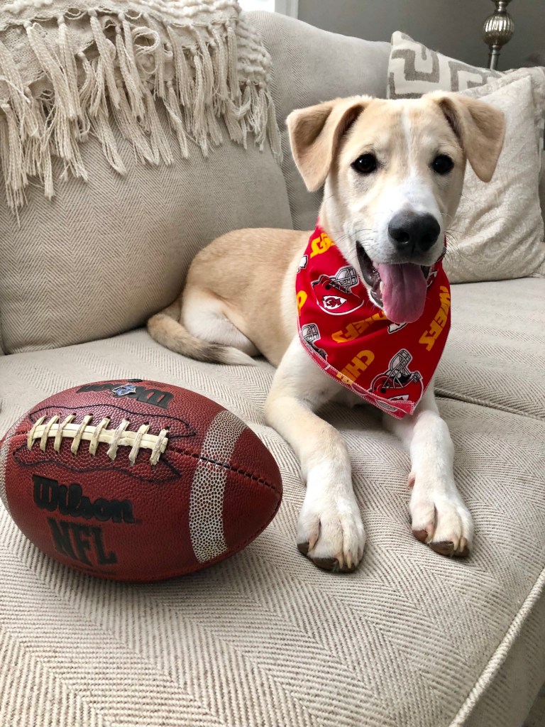 Once we got Homer last summer, I started following @Goldendogco on Instagram after my friend told me about them. Then, it became very clear that Homer needed to have a variety of bandanas including one for football season. I’m sure the Chiefs won the Super Bowl because Homer represented the team each week with his bandana. 😉 Needless to say, they have a variety of options and sizes for dogs big and small. Homer’s bandana collection is next level!