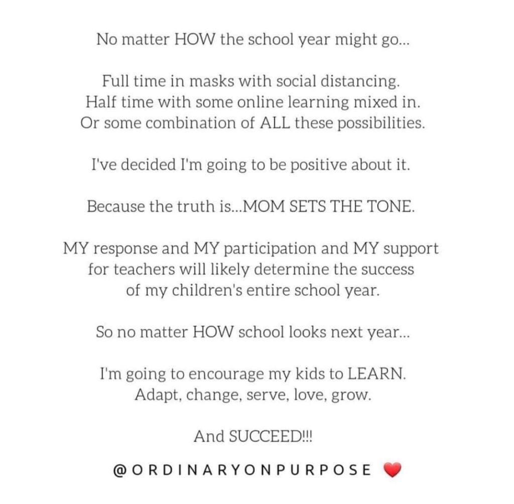 I’ve been (worrying and) praying about the start of the school year. At this time, our district is starting with virtual learning on August 26th. Usually, our first day of school would be a week from today. Teachers will start back August 10th and prepare for the start of the year.