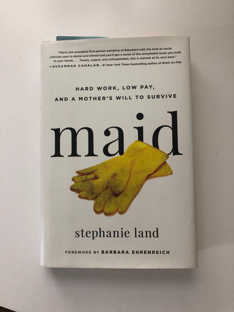 I’m currently reading Maid. I’ve had this book on my list for a while, and I finally started it. In Stephanie Land’s memoir, she shares about being homeless, a single mom, and working to do whatever it takes to provide for herself and her daughter. This book explores poverty in America and shines a light on the inequities of working, middle, and upper class societies.