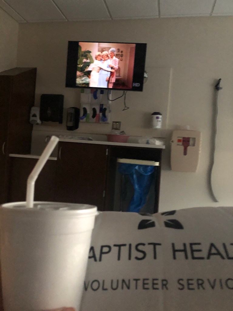 My brother actually stopped by around 8:30 for a bit, and Travis got there around 9:00. My doctor checked on me, and said if I ate a decent lunch, I could go home. So, Travis hung out with me. I napped off and on, answered texts, and watched the Golden Girls. The kids were at home with the sitter doing school work. I was discharged around 2:00.