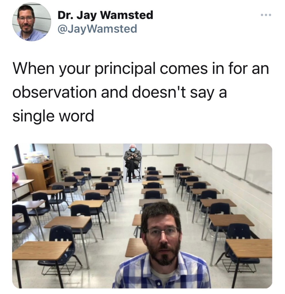 And I can’t find it but there was a meme of Bernie on the school playground with a caption about “teachers on playground duty.” haha 😂