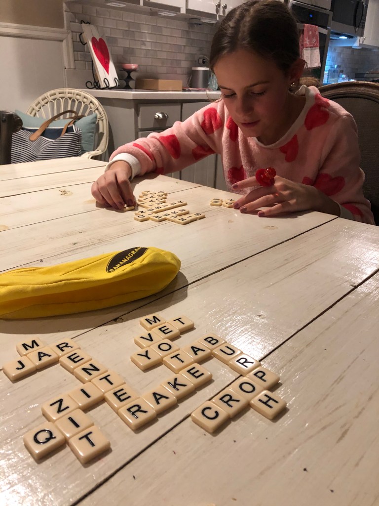 Playing games as a family is something we like to do. Our current fave is Bananagrams.