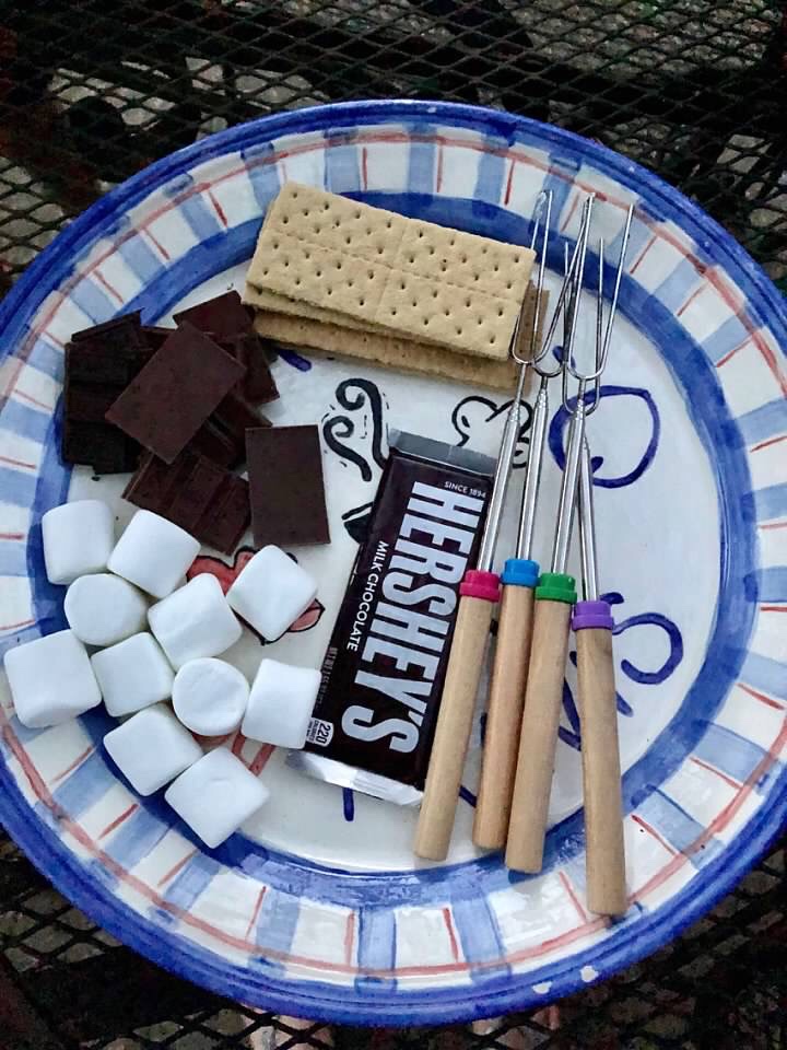 We use our backyard fire pit quite a bit to hang out, and we often make s’mores.