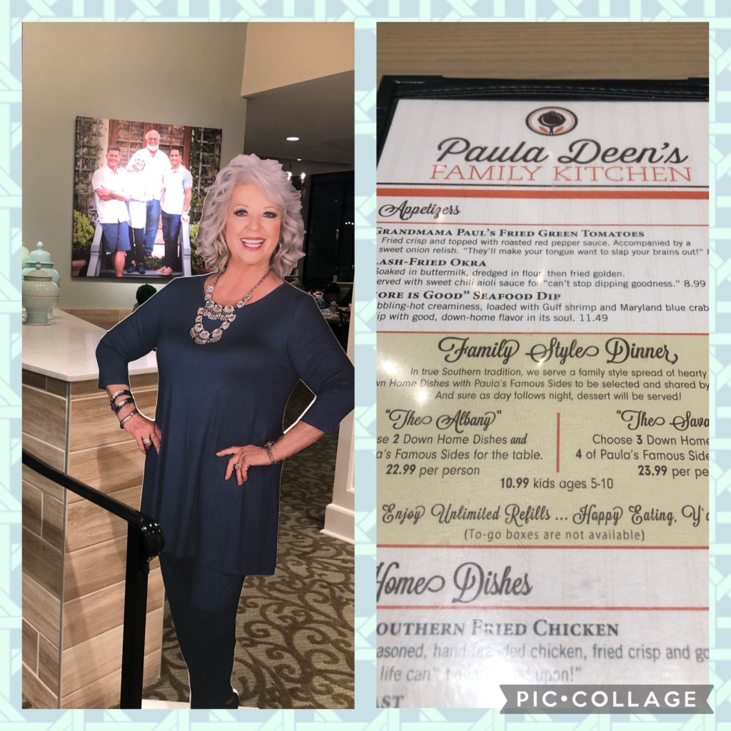 The main restaurants (sushi, Mexican food, steak, etc) on the property rotated being open for dinner while the market and smaller “grab and go” places like Cinnabon and Starbucks were open daily. Tuesday night, we decided to see what was nearby and stumbled upon Paula Deen’s Family Kitchen. There was a bit of a wait, so we had a later dinner than usual. It was “family style,” so we shared the fried chicken, chicken and dumplings, green beans, mac and cheese (and more!) between the four of us. The desserts were amazing, and I even picked up a couple of boxes of the gooey cake on the way out. The restaurant was super cute, and I had to show great restraint at the gift shop!
