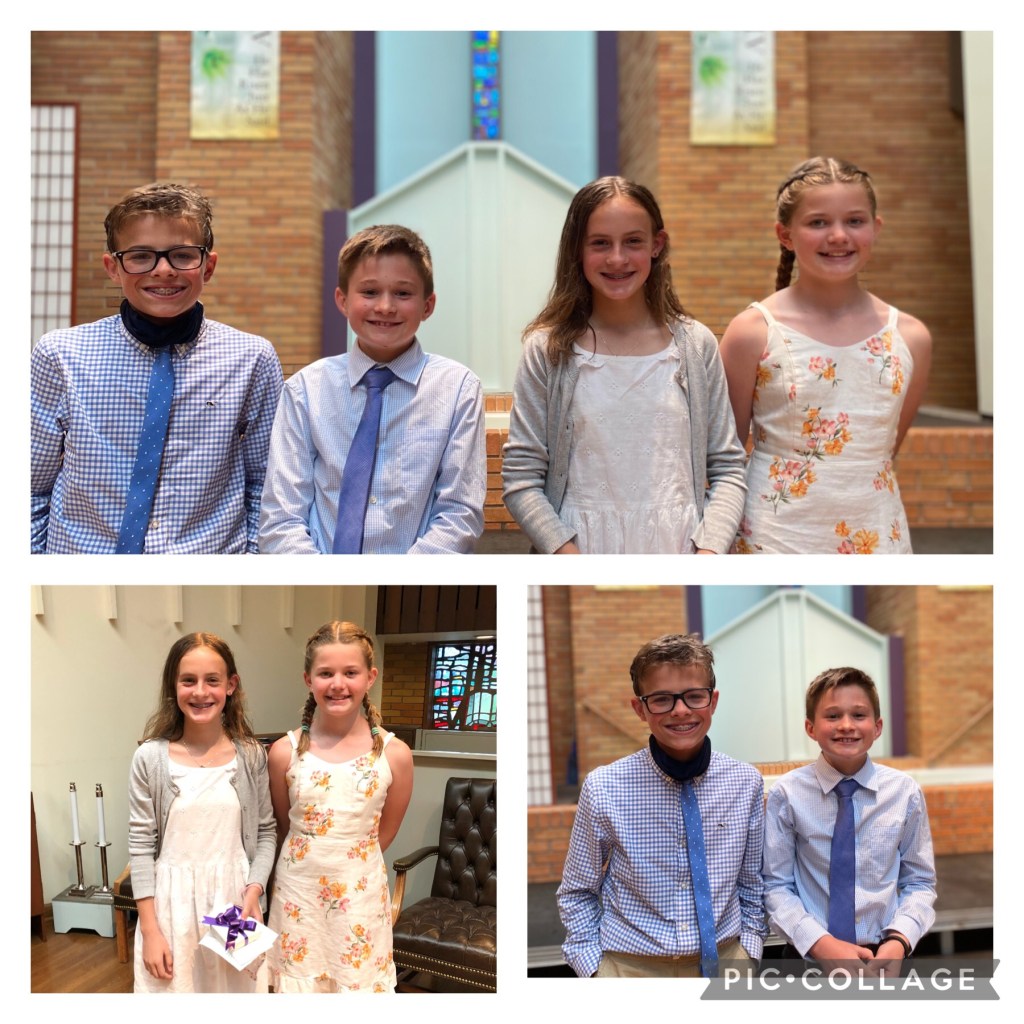 On Sunday, the kids were baptized with other 5th and 6th graders at our church. We had a large class of students scheduled for baptism due to last year’s group not being able to be baptized due to Covid. My kids and seven others were baptized on Sunday.