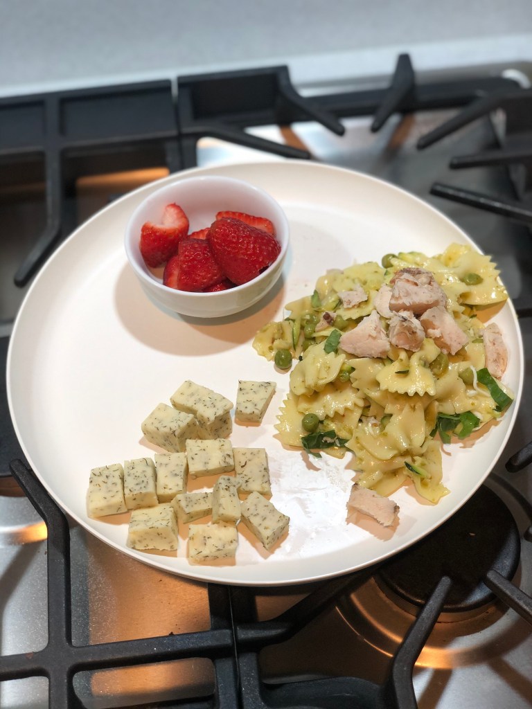 I had an evening where it was just me for dinner, so I kept it simple with my favorite Trader Joe’s Havarti Dill cheese, and tried the Trader Joe’s lemon basil pasta, and it was so good! This was a simple summer dinner, and it was delish!