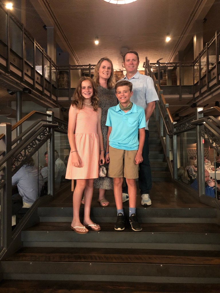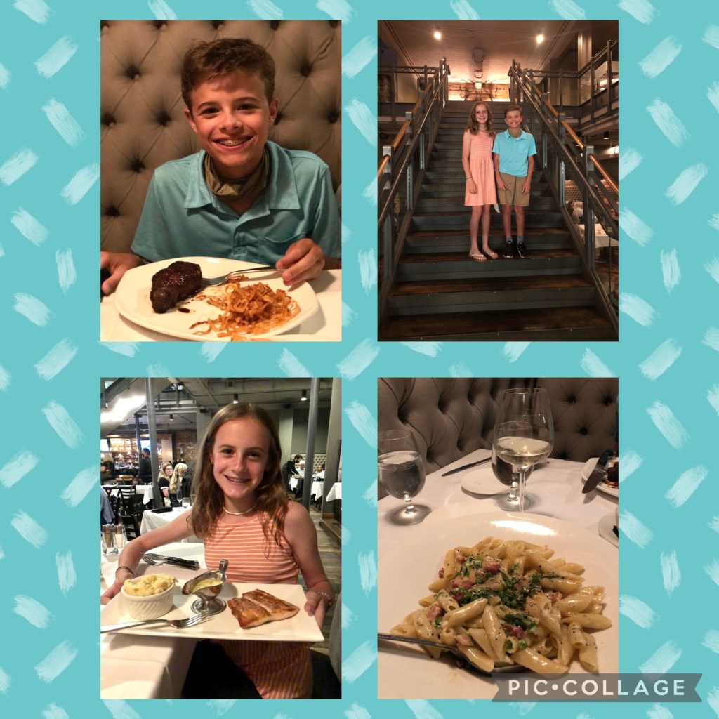 Travis and I took the kids out to dinner on Sunday night for one final end of the school year celebration. With all the hustle and bustle of the end of the school year activities, we hadn’t done anything with just the four of us. We enjoyed at nice dinner at Tony’s where Travis and Hayden split the filet, Hadley ordered the salmon (of course), and I got the carbonara.