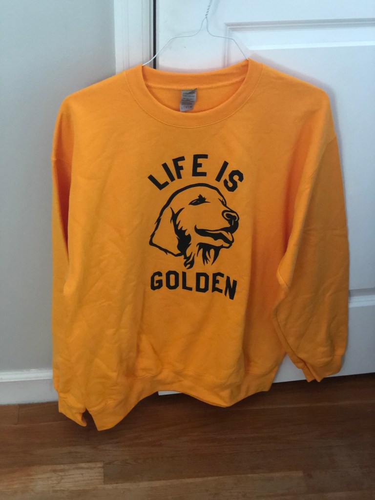 One of my friends has a sweet Golden Retriever, and when I saw this sweatshirt, I knew I had to get it for her for her birthday!