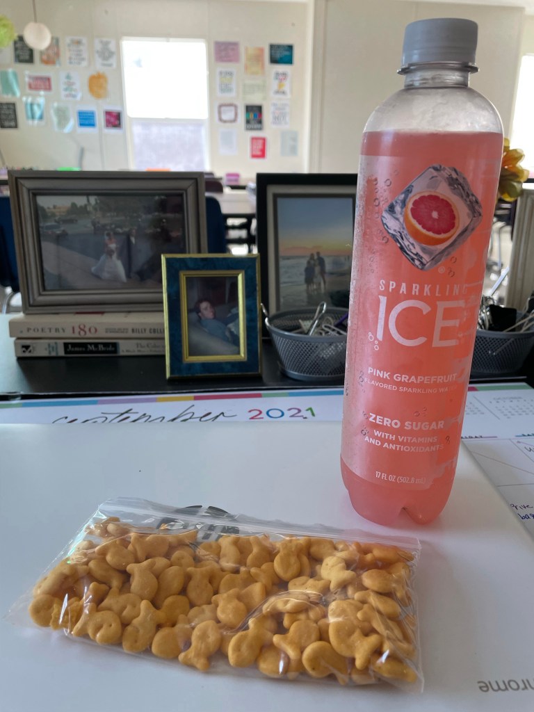 Then, the day became a blur. I had a meeting, helped many students, ate my lunch (forgot to take a photo), made a couple of phone calls, met with students in the afternoon, and then had a few minutes for my afternoon snack while I caught up on paperwork. Then, I met with a few students during 6th hour before wrapping up my school day.