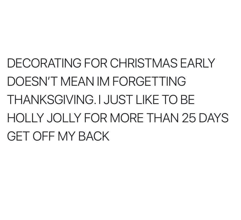 So, this is me–I have up two trees, and the rest of my house will remain full of pumpkins for a couple of more weeks. I just love the glow of a Christmas tree and figure, “Why not?!”