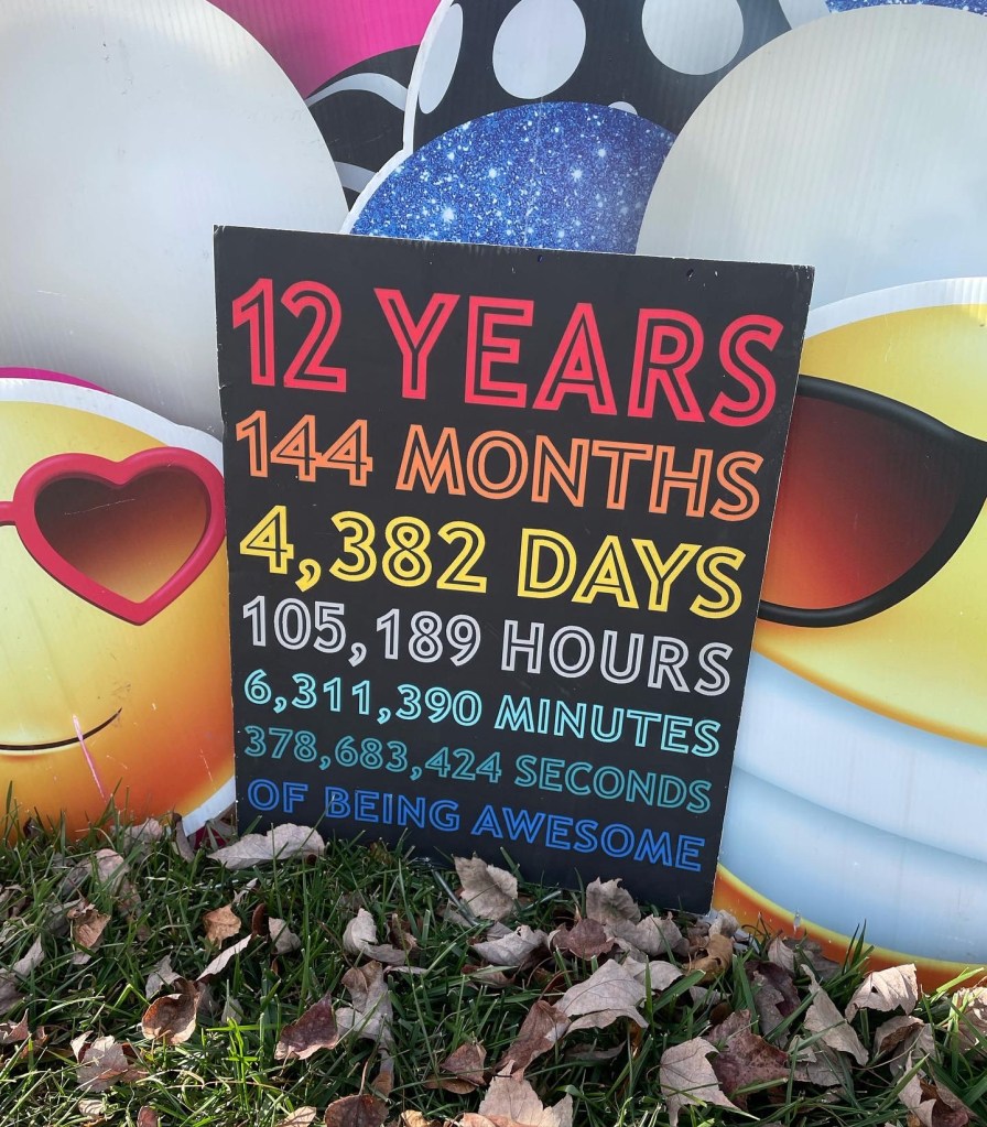 This sign gets me every time. This also means I’ve been a mom for 12 years, 144 months, and 4,382 days! Time is certainly flying by.