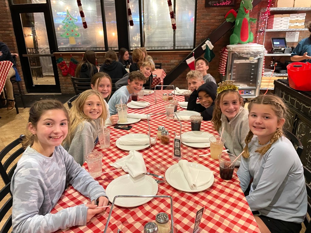 After Sky Zone, we went to Grimaldis for pizza. This group of ten seemed to have so much fun. They talked, laughed, and acted silly. Hayden and Hadley opened their gifts while we waited on the pizza. Then, these kids crushed two huge pizzas!