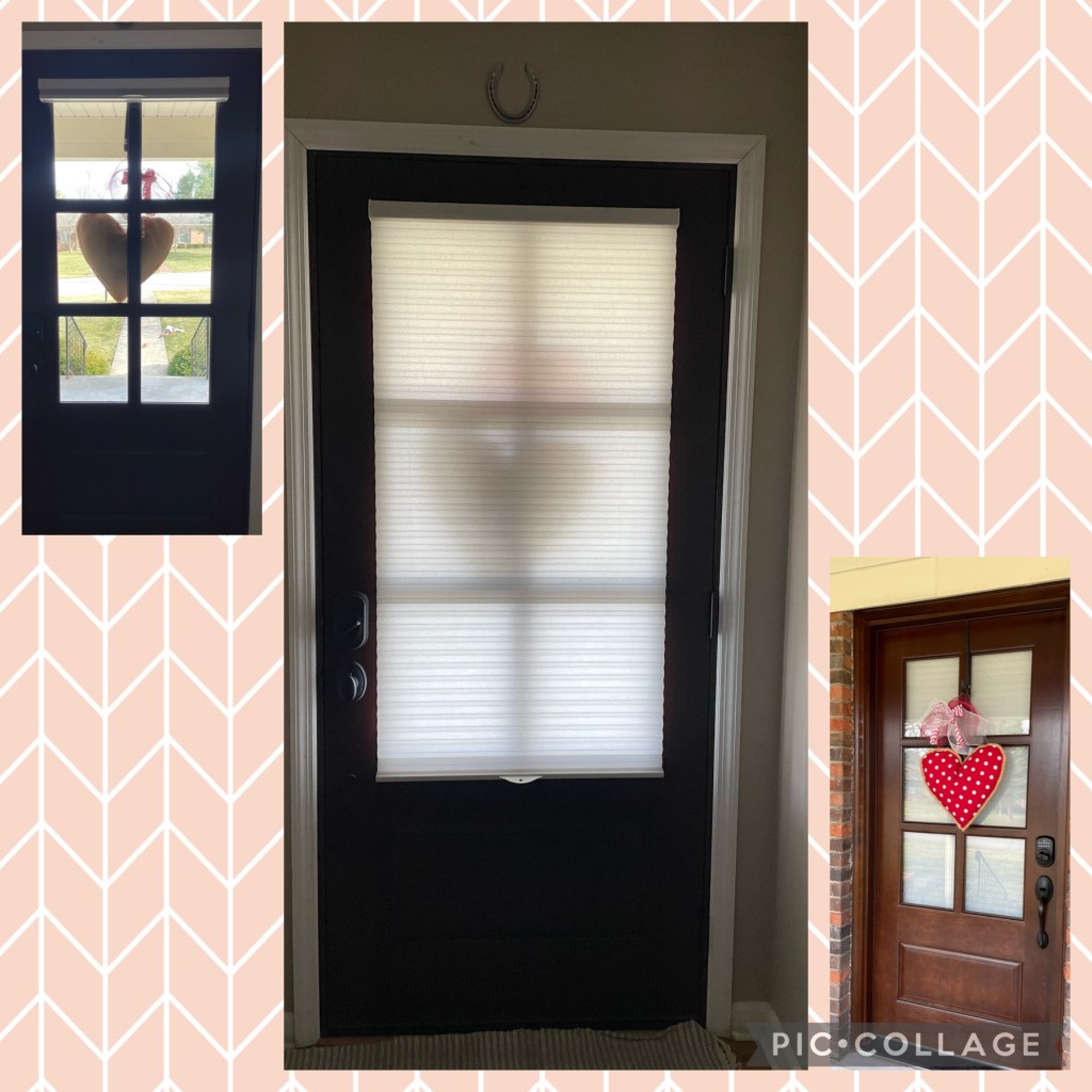 We got our new front door over two years ago, but we waited to get a privacy shade until we were pretty convinced that Homer wouldn’t pull it down! We placed the order in November, and finally had it installed this week.