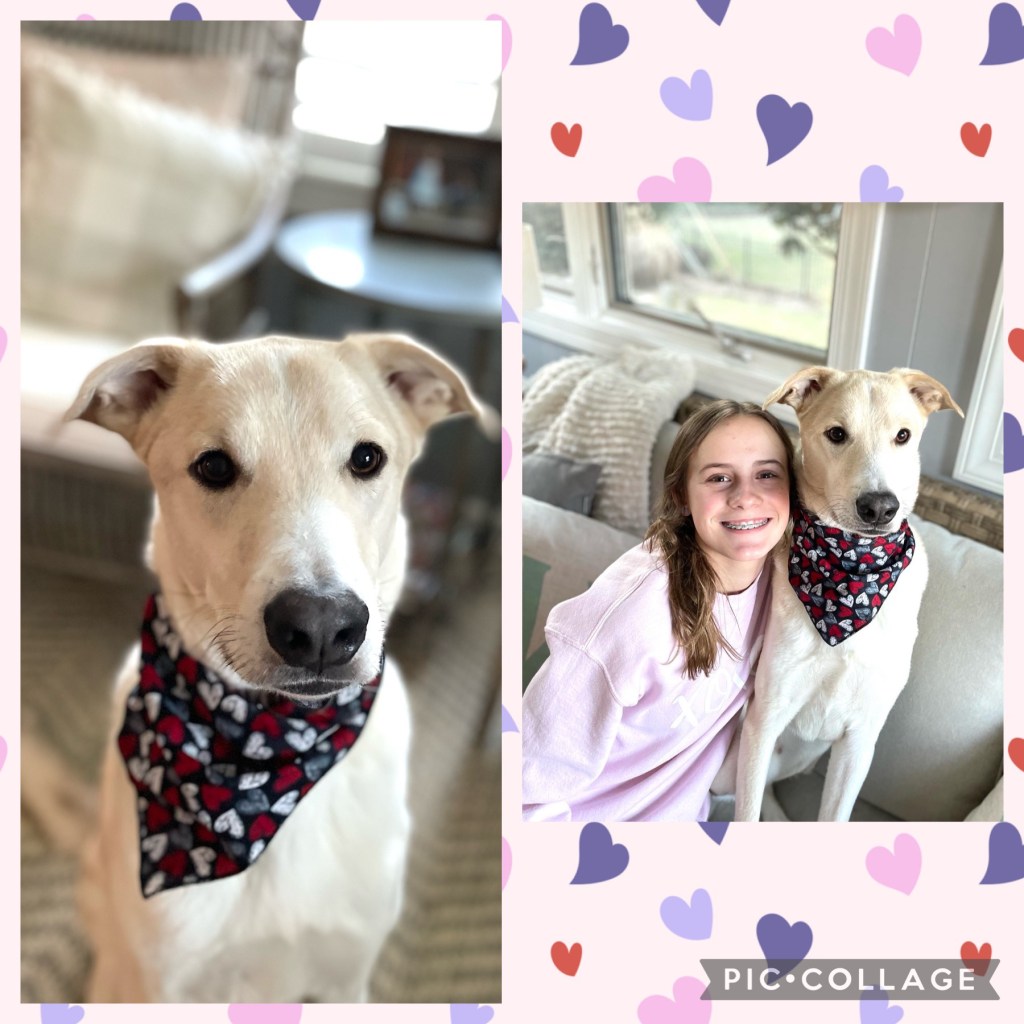 On Monday, I put Homer’s Valentine’s Day scarf on him, and Hadley helped me get a picture of him. Then she said, “Mom, take a pic of me with my Valentine.” She proceeded to plop down next to Homer, and said, “Homer is my Valentine!”
