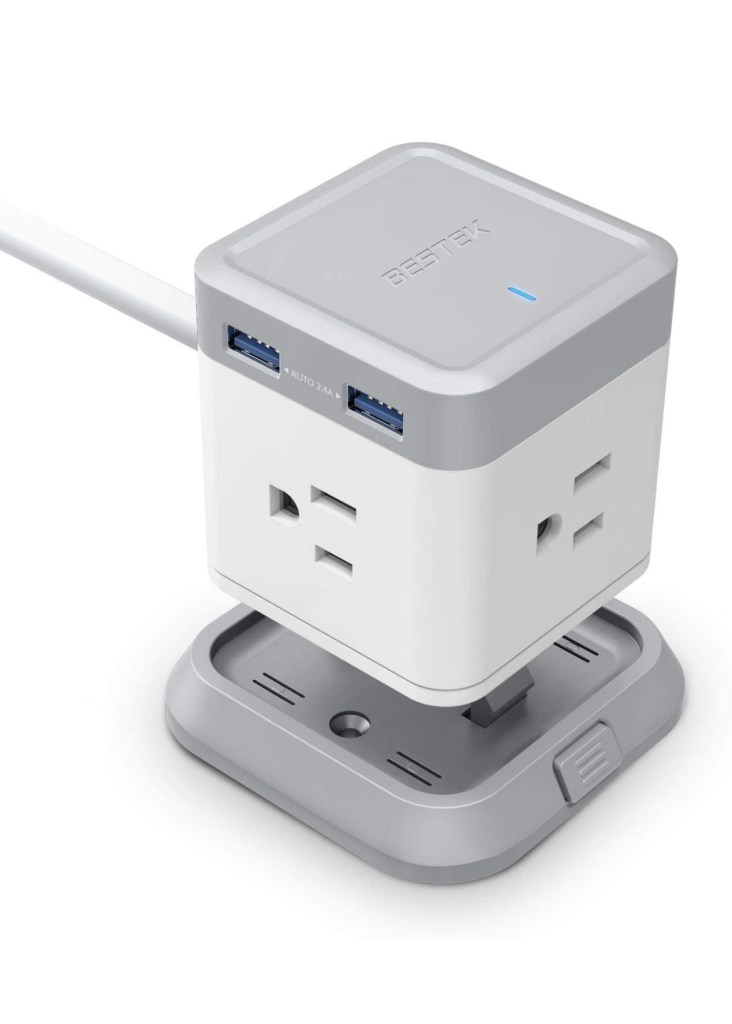 Travis bought this cube power strip in order to get our TV cords under control on the living room built in shelves. He didn’t realize that it would be a bit bigger than the hole we have cut out for the wires, but he figured it out and made it work. It is a better option than the black power strip we had previously.