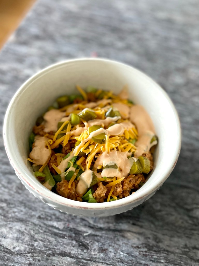 Lately, my “go to” has been a Cheeseburger salad. It’s delish.