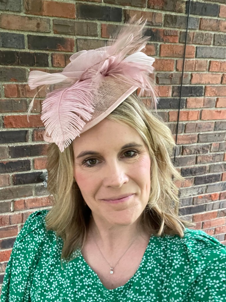If I don’t find a pink dress, I will add a touch of pink with a fascinator. Years ago, if we went to Oaks or Derby, I’d usually wear a fancy hat, but I much prefer a fascinator.