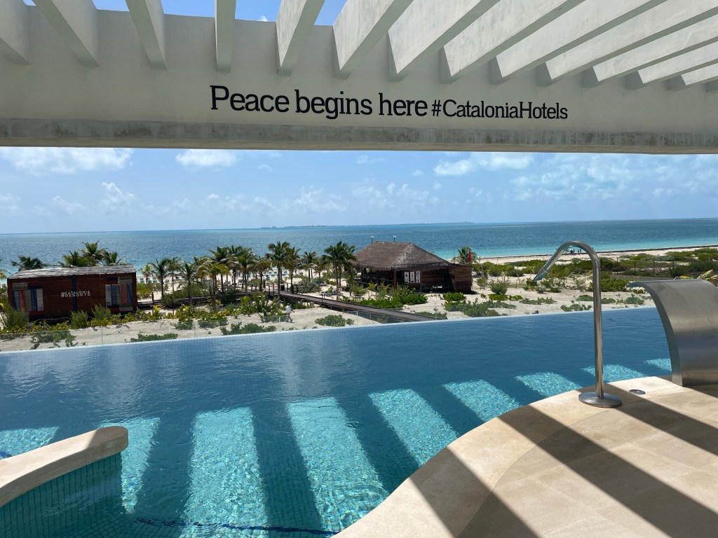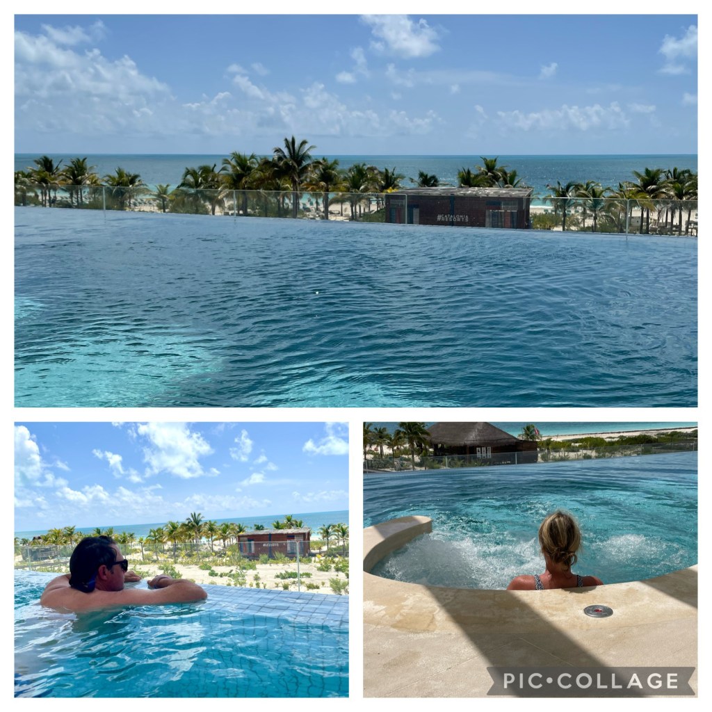 On other days, from the beach, I could see people up in this pool and there definitely were some who were posing by the ledge and having their photos taken. The sweet hostess offered to take our photo…we did not sit and pose on the ledge. 😂