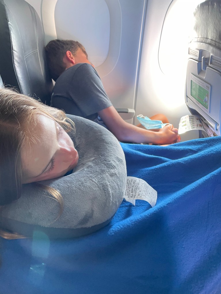The flight took off on time, and the kids slept off and on most of the way. I did the same along with read my book.