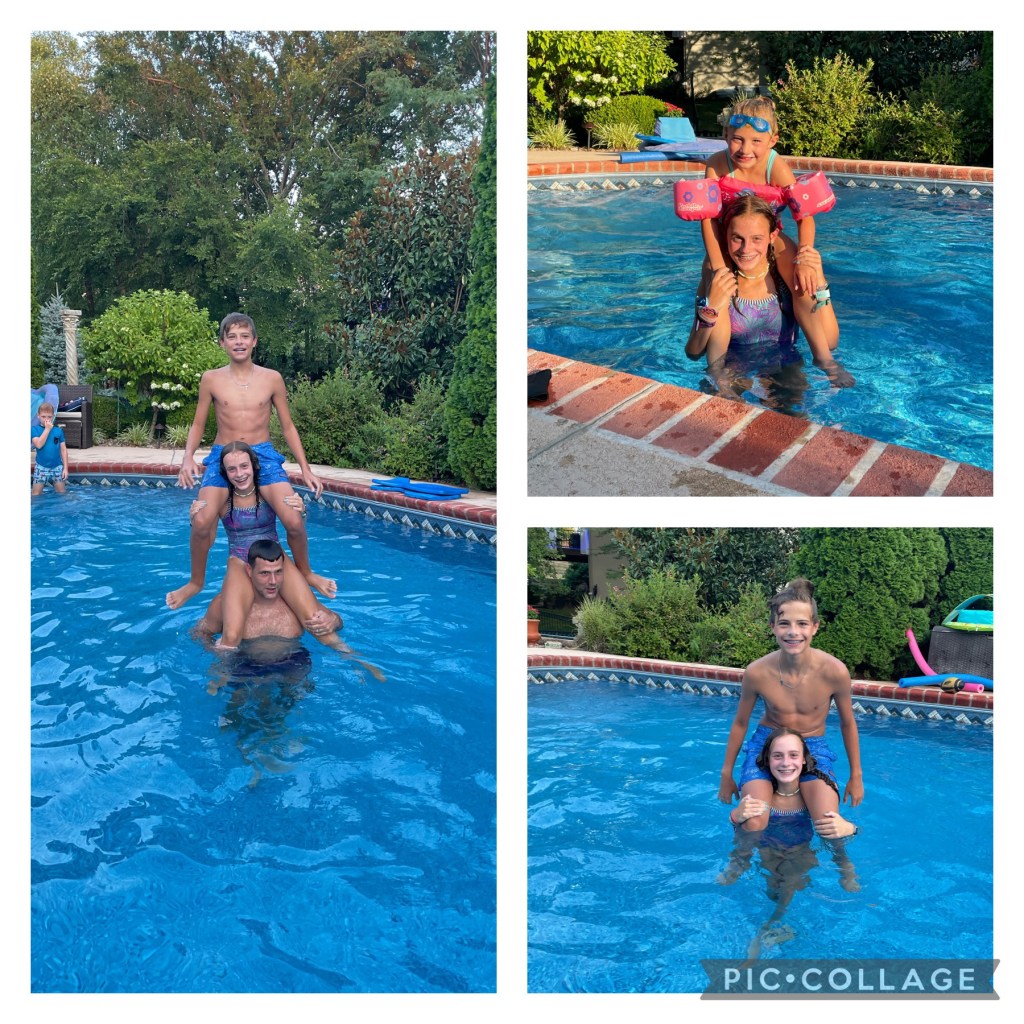 Later in the evening, we went to my mom’s friend’s backyard pool. He always lets us come over when we visit, and the pool is a great spot to cool off!