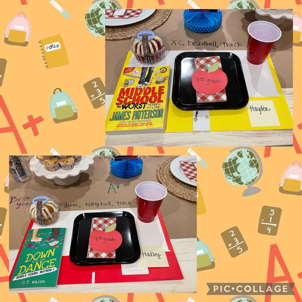 I picked the kids each up a book and a Bundt cake to add to their place settings. Otherwise, I used the same folder, plate, and napkins as in previous years.