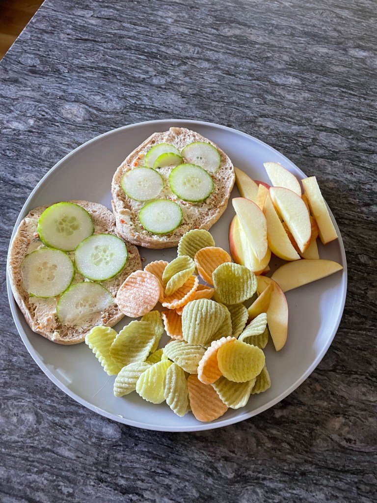 I love this sandwich idea that Amy shared recently. I added sandwich thins to my Kroger order this week and then used Garden Vegetable Alouette and cucumbers to my sandwich. I love having an apple as a snack or for lunch at home since I prefer an apple cut up. Veggie chips are my fave.
