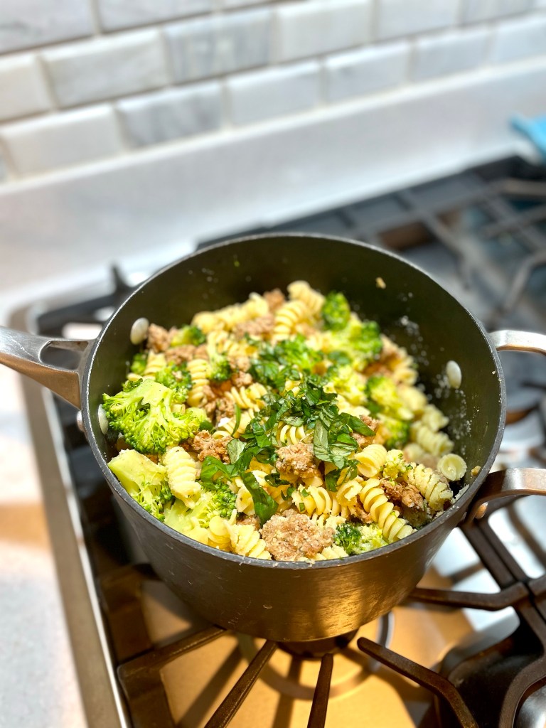 - Tuesday: Gnocchi (from Trader Joe’s) with marinara sauce and green beans