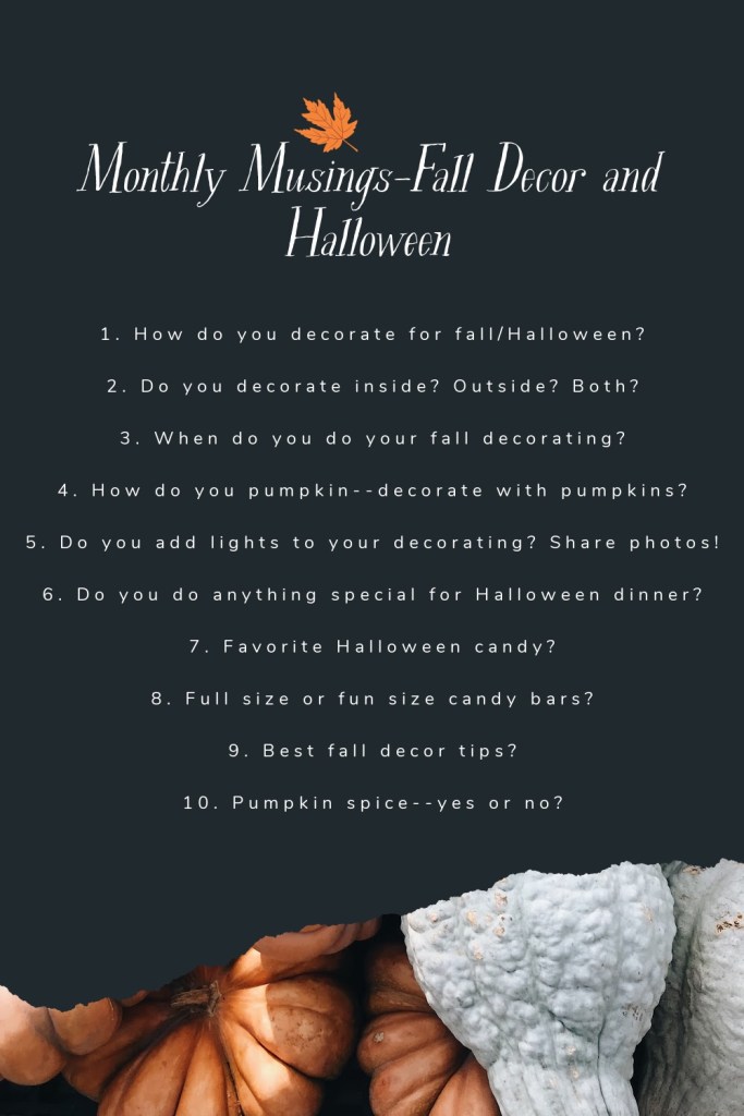 You know I love your decor! And, you have lots of places to put decor! Your big front porch, your hall table, your coffee table – I love it all! I forgot about my lights I like to put on my mantle! I need to add those because it is so dark in the mornings now and to have in the evenings. I also could benefit from a fall throw blanket and some more pillows. Maybe I will look this weekend!