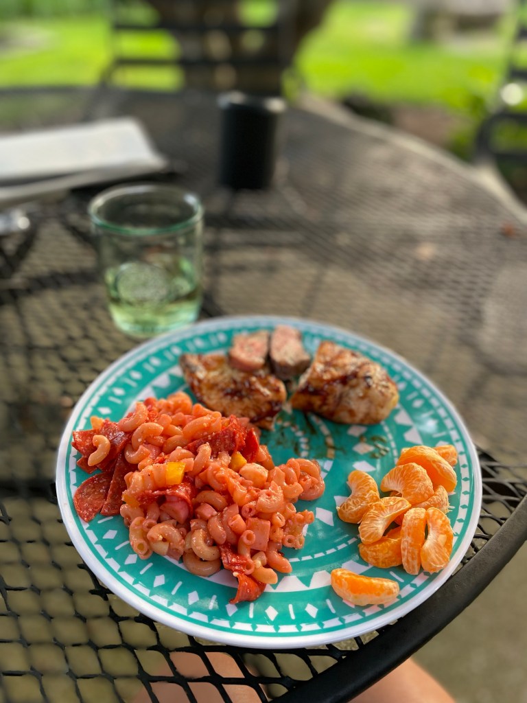 We’ve been grilling out already which has been so nice….Recently, we’ve had steak, BBQ chicken, and pork chops. Last weekend, I made Shay’s Pepperoni and Bell Pepper pasta salad, and Travis and I really liked it. Hadley prefers the one from the Betty Crocker box…haha.