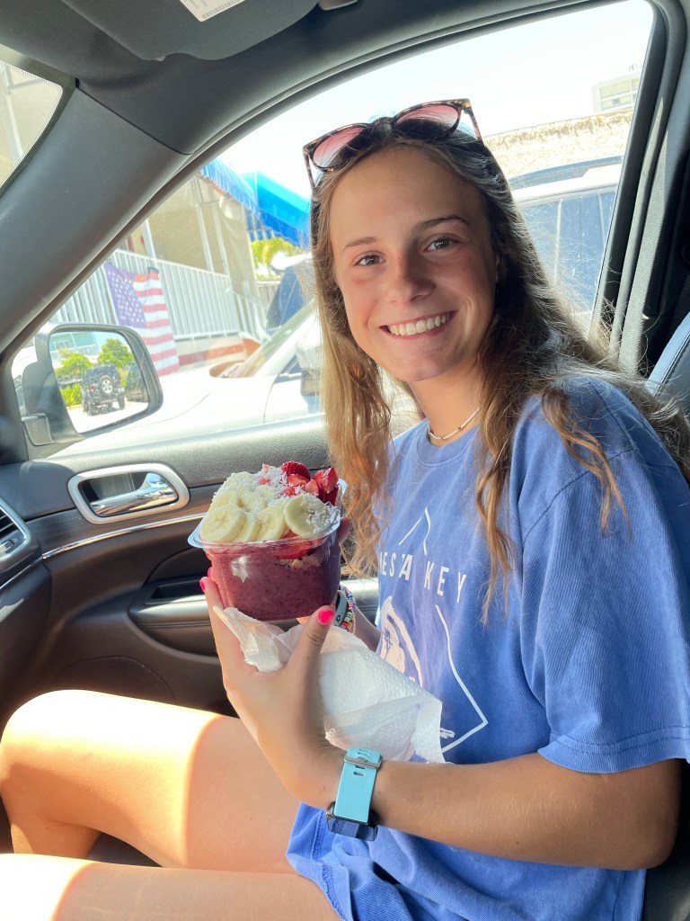 We had a quick lunch at the house before going to the beach. Hadley wanted a smoothie bowl, so we stopped for one as well as sweatshirt shopping