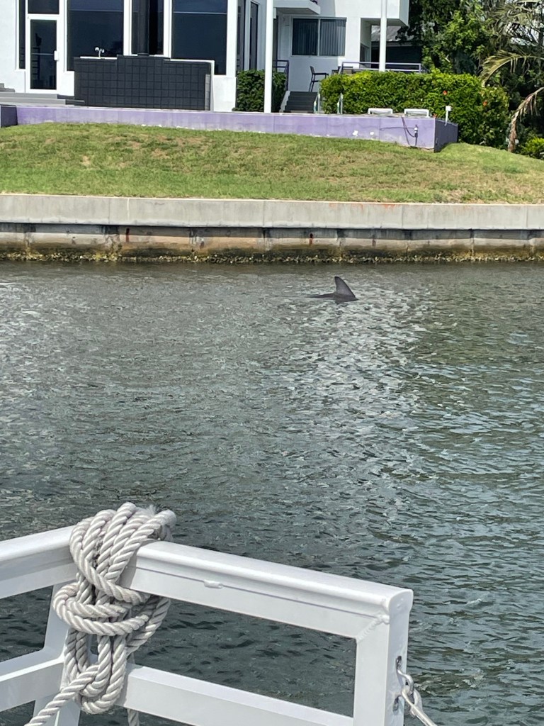 So, we were on the lookout for dolphins with not much luck…and then, on our way back, almost to the marina, we saw three dolphins right in front of Prince’s house! It was cool to see…but hard to catch in a picture.