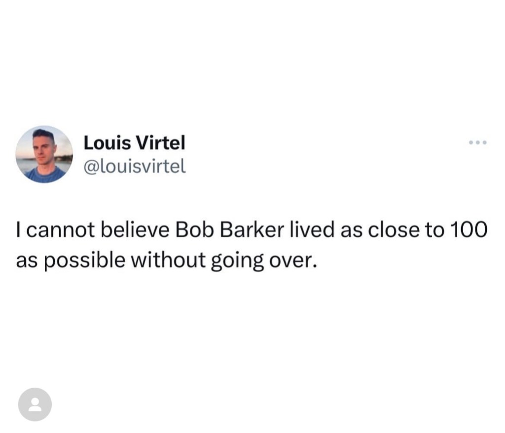 Did you hear the news about Bob Barker? Ahhh. I used to love The Price is Right! I saw this meme on Saturday, and while I kind of wondered if it was “too soon,” the sentiment was a sweet nod to him and the game show.