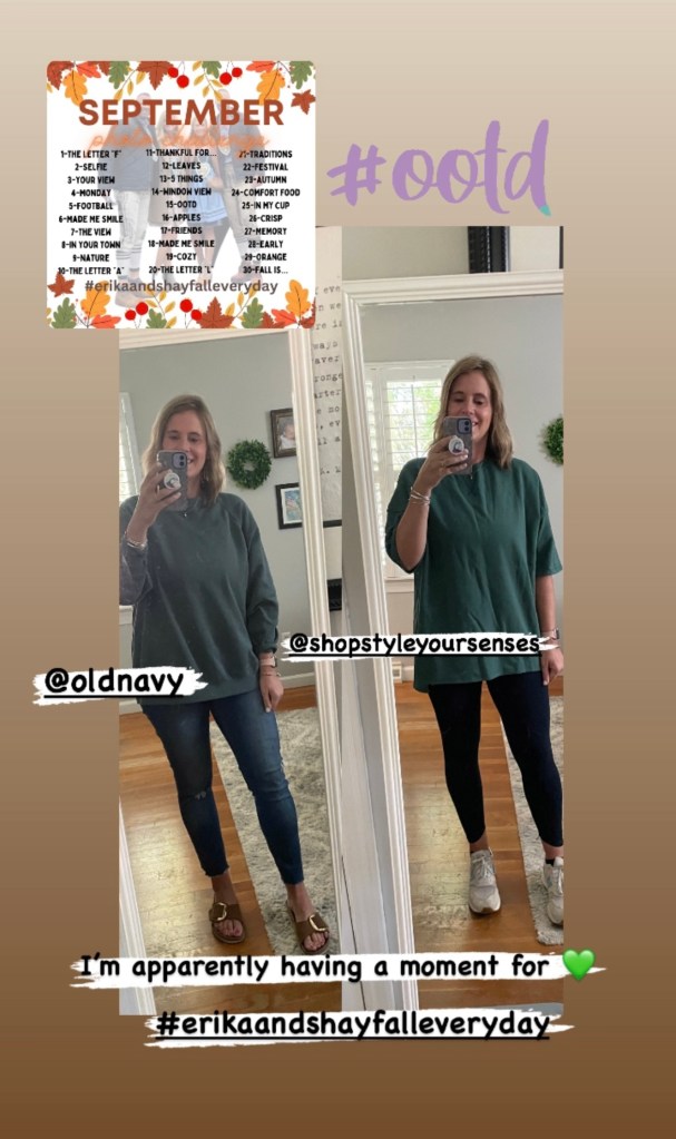 Last Friday, I was having a moment for green, I guess. I wore this sweatshirt to school and then changed into even comfier clothes, including this SSYS shirt and leggings, for Hayden’s cross country meet. I had very casual OOTD.