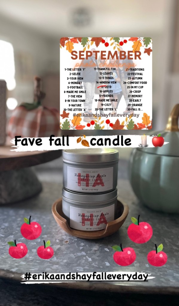 I’ve been burning one of my Honeycrisp Apple candles from Trader Joe’s pretty much non-stop since I got them.