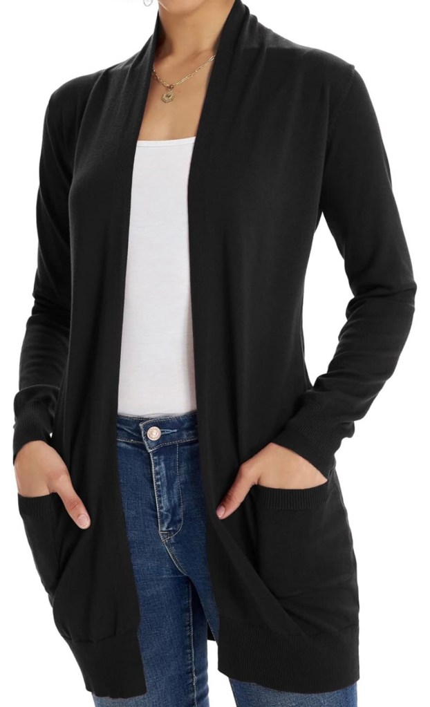I purchased this cardigan in black. I now have it in three colors. I did replace a black cardigan that I’ve had for probably ten years with this one. My previous one was showing its age, and didn’t have pockets. I need pockets, especially when I wear cardigans to school.