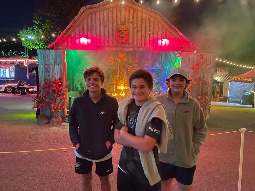 Hayden and friends went to a haunted house last week. My friend who took them definitely wins for “fun mom!”