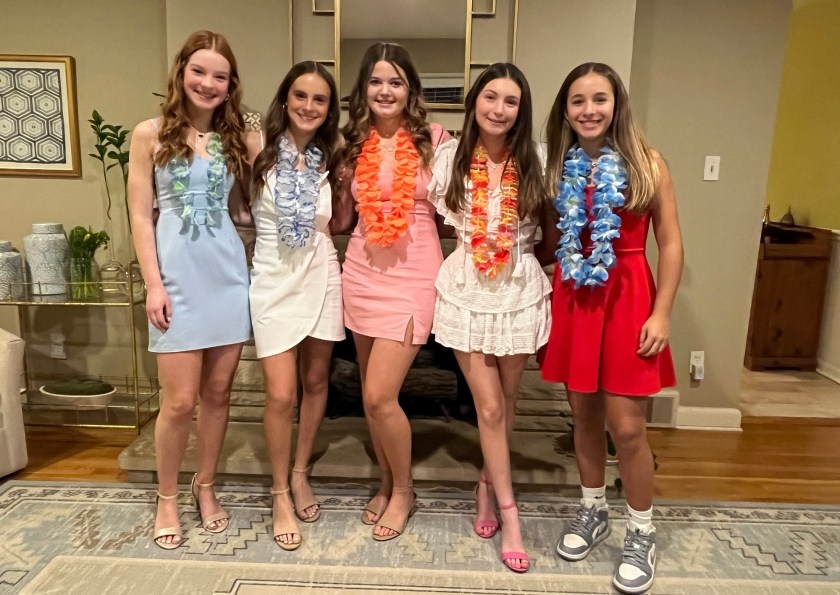 Saturday was extra busy going straight from three volleyball games back home to get ready for the third cotillion dance. The theme was Malibu Mingle, so Hawaiian shirts, shorts, and leis were the dress code.