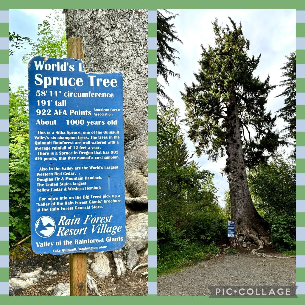 After we got settled in our room, we got back in the car and drove around a bit. One of the stops was at the “World’s Largest Spruce.” It was probably a half mile hike to see it…