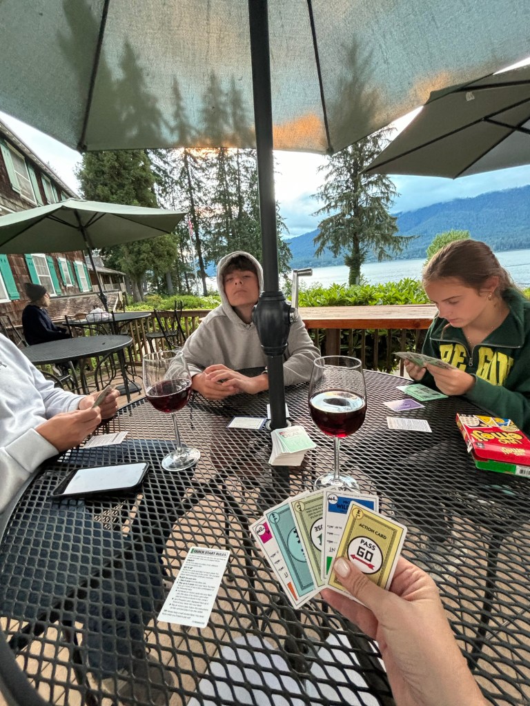 In the lobby, there were puzzles and games, but I’d brought a couple of games with us like Uno and Monopoly Deal. We sat outside and played for a couple of hours before bedtime.