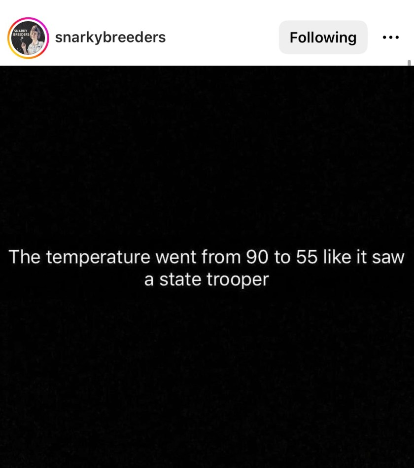 4. That’s a funny meme! That is sort of the same here, although the speeds in kilometers don’t quite match up to the temperatures. In Celsius it went from 20 degrees to 5 degrees.