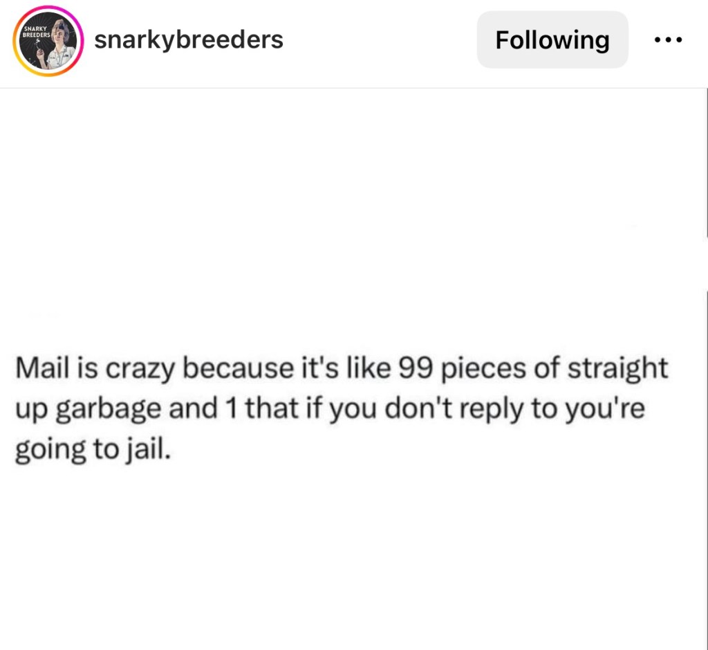 This one made me laugh out loud. I swear I get so much junk mail that I do almost throw important mail out.
